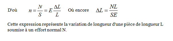 La loi de Hooke définie le domaine élastique et permet d’écrire une relation linéaire entre les contraintes et déformations dans un élément « ds » de la section droite étudiée. Soit « E » le module d’élasticité longitudinale, et « i » le déplacement relatif.